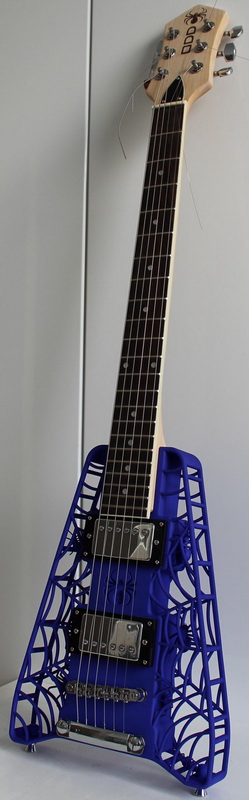 The Spider 3D printed guitar was designed specifically for laser sintering, one of the common 3D printing technologies that allows for the manufacture of full strength, extremely complex parts. The entire body, including all the little spiders inside the body, was printed as a single component, which could not be manufactured any other way.