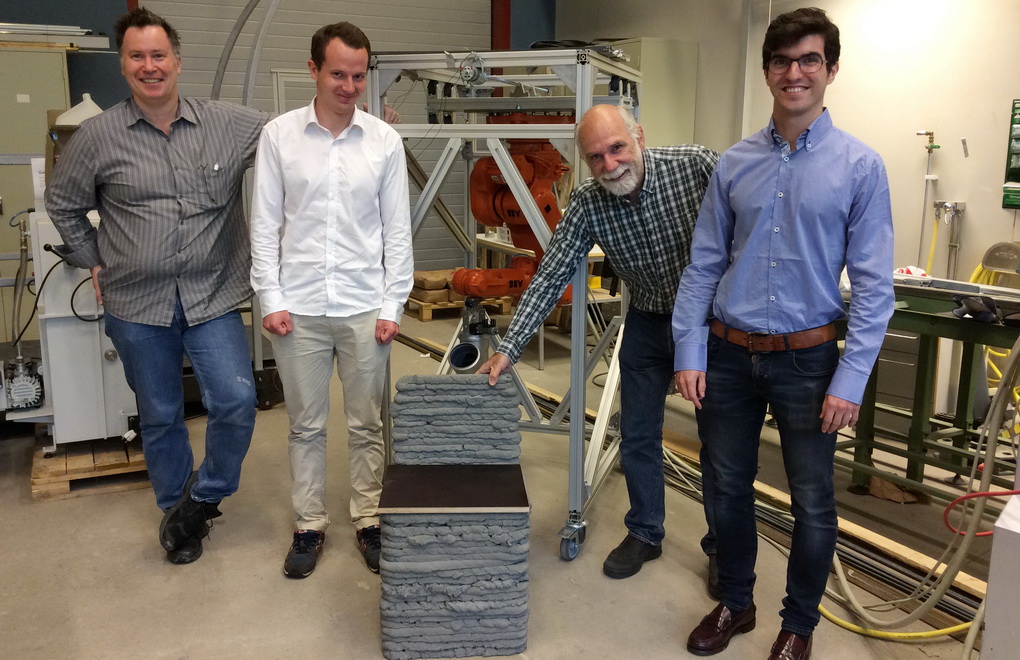 The Concrete 3D printer team: Prof Olaf Diegel, Lars Henrik Anell, A. Prof. Giorgos Nikoleris, and Borja Serra