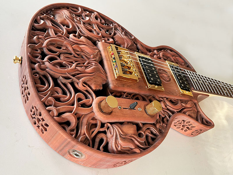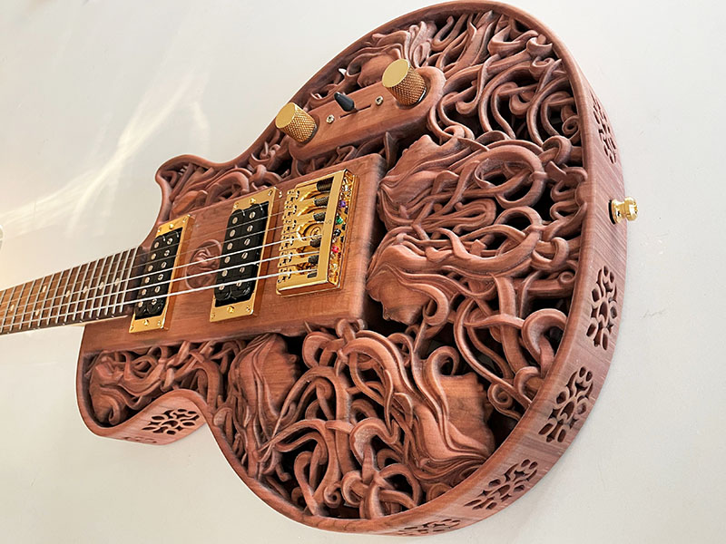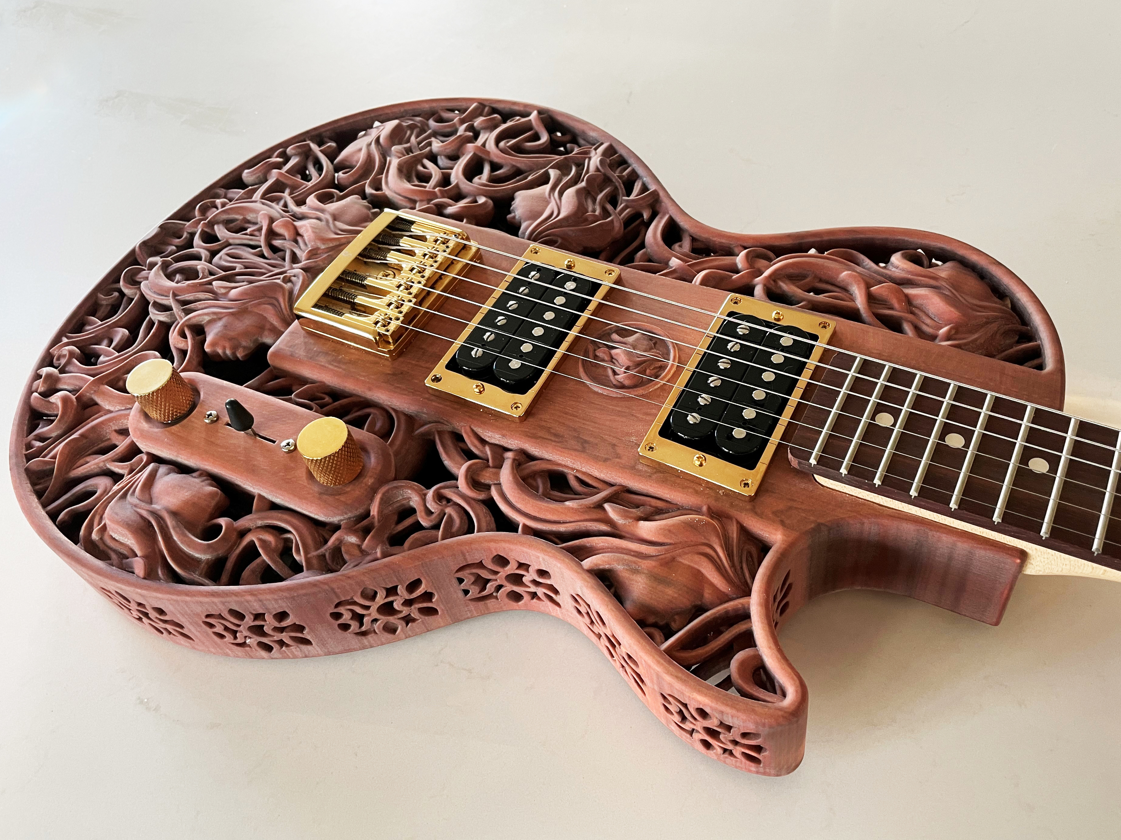 Boy, have my carving skills improved! Meet Gaia, my latest guitar creation. It’s made of rare New Zealand pseudonium wood that was air-dried for 10 years by the warm breath of Vestal virgins and can only be carved on a moonlit night. 🤣