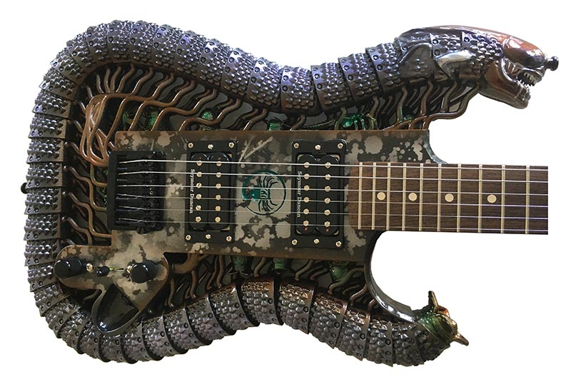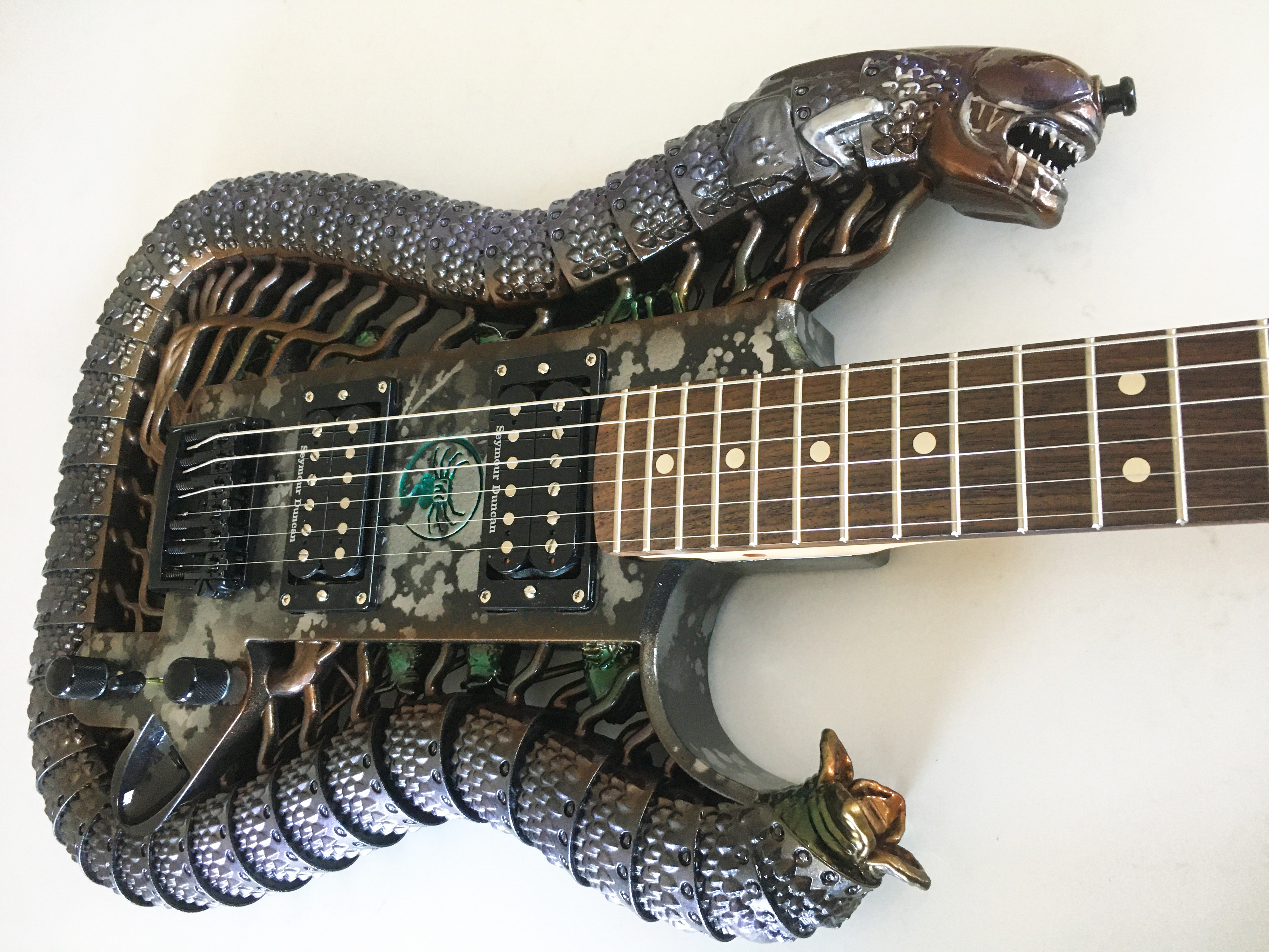 That epic line form the Alien movie is almost as menacing as the Alien themed Xenomorph guitar.